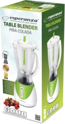 Uživajte u svakodnevnom miksanju s kompaktnim i pouzdanim stolnim blenderom Esperanza Pina Colada. Idealan za pripremu voćnih i povrtnih napitaka, juha ili dječjih kašica. Snažan motor s funkcijom Turbo lako se nosi i s manjim kockicama leda, a oštrice od nehrđajućeg čelika osiguravaju ravnomjerno usitnjavanje.