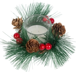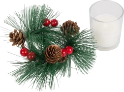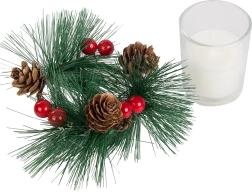 Te dekorativne svijeće u stilu božićnog vijenca savršen su dodatak za vaš svečani stol ili policu. Borove grane, češeri i crvene bobice oko staklene svijećnjake dodaju prirodnu božićnu čaroliju.