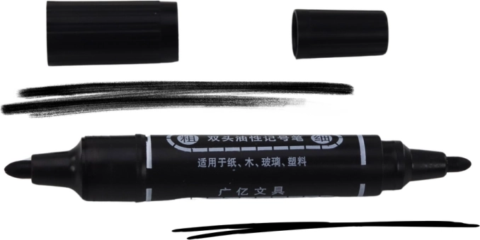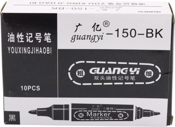 Praktičan set od 10 crnih obostranih markera s brzosušećom i vodootpornom tintom za čisto i dugotrajno označavanje. Zahvaljujući dvama vrhovima na svakom markeru, možete stvarati i fine detalje i široke poteze na različitim površinama – od plastike i metala do drva ili kamena.