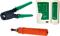 Sastavni dio je multifunkcionalni tester kabela RJ45/RJ11 za provjeru ispravnog ožičenja, krimp kliješta za konektore 4P/6P/8P, LSA alat za završavanje na spojnim blokovima, stripper i rezači za čistu pripremu vodiča te set konektora za trenutnu uporabu.