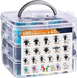 Set sadrži 23 najčešće dimenzije spojnica, kvačica i kopči, koje se obično koriste u većini marki i modela automobila. Izrađene od izdržljive plastike, spajalice pružaju dugotrajnu upotrebu čak i u zahtjevnim uvjetima.