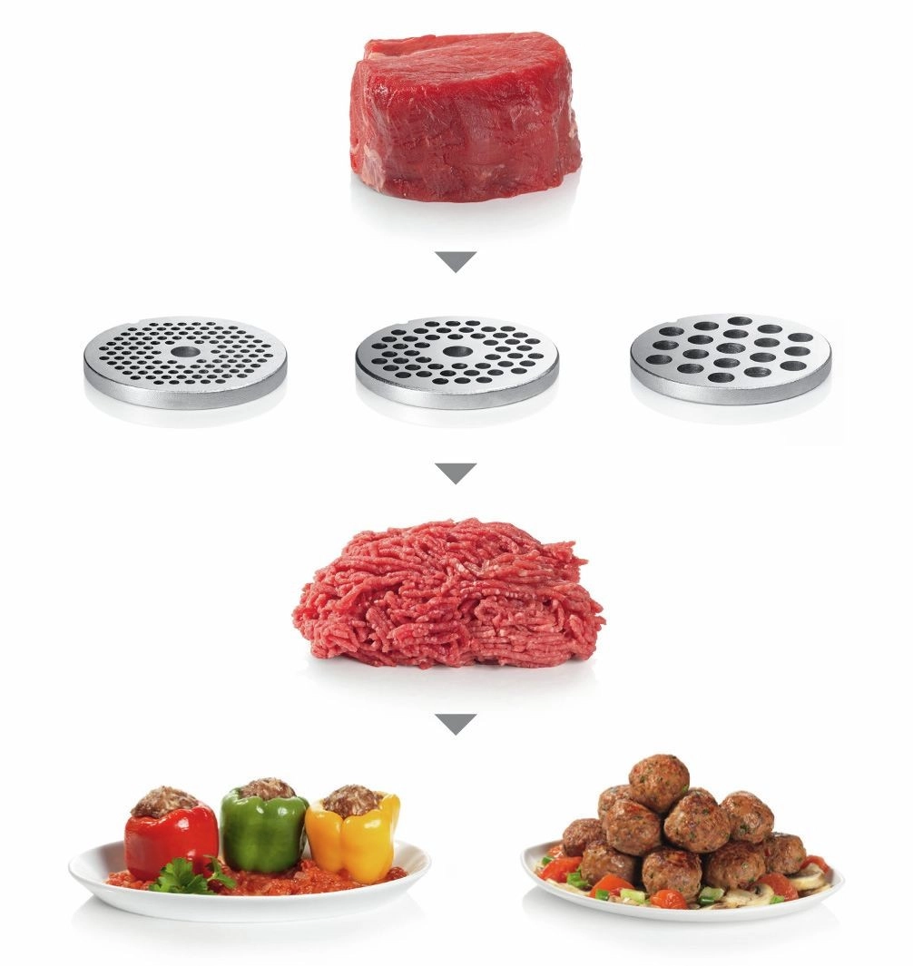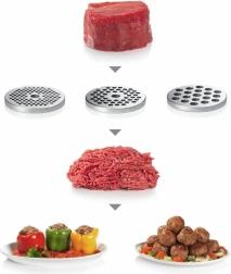 - Svestrana oprema – različiti rešetkasti diskovi za mljevenje i nastavci za raznoliku kuhinju.