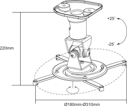 Za precizno ciljanja slike nosač nudi nagib do ±25° i glatko okretanje za 360°. Ugradnja na ravan strop je brza i jednostavna – sve potrebno nalazi se u pakiranju.