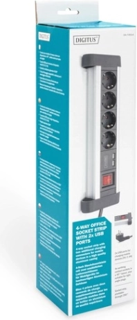 Elegantna i funkcionalna uredska napojna letvica opremljena s četiri utičnice i dvama USB priključcima koji omogućuju učinkovito punjenje i istodobno povezivanje više uređaja. Zahvaljujući mogućnosti zakretanja od 290° lako se prilagođava vašim potrebama.