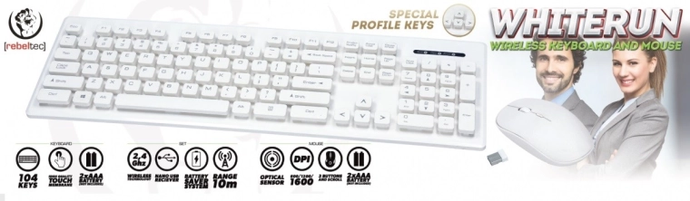 Uživajte u slobodi kretanja s bežičnim setom tipkovnice i miša Whiterun u bijeloj izvedbi. Zahvaljujući tehnologiji 2,4 GHz osigurava glatku i pouzdanu komunikaciju s širokim rasponom uređaja.