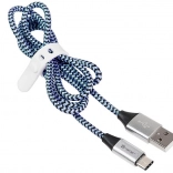 Tekstilni opleteni omotač povećava otpornost na savijanje i petljanje, dok metalno oblikovani, profilirani završeci daju elegantan izgled i ugodnu upotrebu. Kabel je kompatibilan sa širokim rasponom uređaja – pametnim telefonima, tabletima, vanjskim diskovima i novijim prijenosnicima s USB‑C.