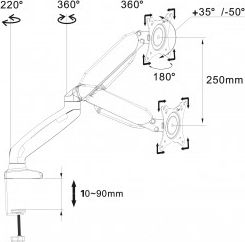 Poboljšajte svoj radni prostor zahvaljujući stalku za monitor s plinskom oprugom, koji omogućuje jednostavno i glatko podešavanje položaja ekrana. Idealan za LCD/LED monitore veličine 10-32".