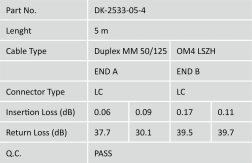 Kabel je osmišljen za jednostavnu ugradnju i povezivanje. Zahvaljujući plastičnim LC konektorima i reflektirajućoj površini, kompatibilan je sa složenim mrežnim rješenjima.