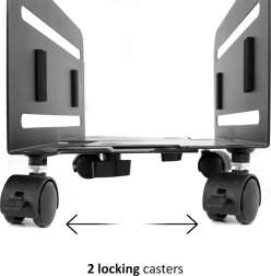 Četiri izdržljiva kotača osiguravaju glatko kretanje u uredu i domu, dok dvije kočnice drže računalo čvrsto na mjestu tijekom rada.