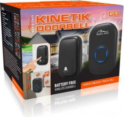 Bez kablova i bez zamjene baterija. Kinetičko zvono MT5701 koristi energiju iz mehaničkog pritiska tipke, koju pretvara u električnu energiju potrebnu za slanje signala do zvona u utičnici. Ugradnja je brza i čista – tipku postavite kod vrata ili ograde, a prijamnik priključite u električnu utičnicu.