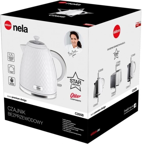 Otkrijte spoj elegantnog dizajna i pouzdane izvedbe. Kuhalo Eldom NELA u bijeloj boji ističe se originalnim oblikom, teksturiranom površinom za siguran hvat i kromiranim detaljima koji mu daju premium izgled. Zahvaljujući grijaćem sustavu snage 2000 W, vodu će prokuhati u trenu za čaj, kavu ili brzo kuhanje.
