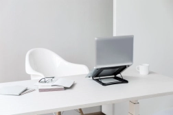 Praktični stalak za prijenosno računalo ne samo da štedi prostor na vašem stolu, već i poboljšava udobnost pri radu. Zahvaljujući podešavanju kuta u pet stupnjeva, lako ćete prilagoditi položaj prijenosnog računala svojim potrebama i tako spriječiti bolove u vratnoj kralježnici. Otvorena konstrukcija potiče protok zraka, što osigurava hlađenje vašeg uređaja i štiti ga od pregrijavanja.