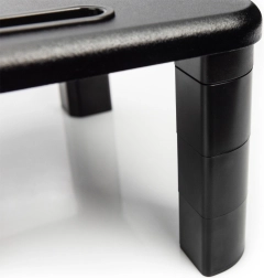 Stalak je izrađen od kvalitetnog materijala koji osigurava izdržljivost i dugovječnost, a njegov elegantni crni dizajn sjajno se uklapa u svaki moderan interijer. To je idealno rješenje za one koji žele poboljšati svoju radnu površinu ne samo iz praktičkih, nego i estetskih razloga.