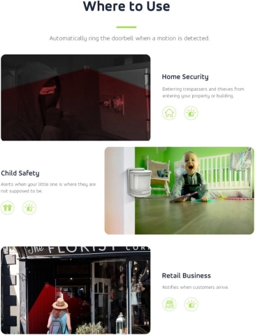 - Sigurnost djece: postavite senzor na mjesta gdje ne smiju ulaziti – sustav će vas upozoriti na njihov pokret