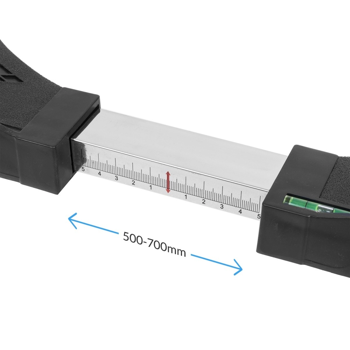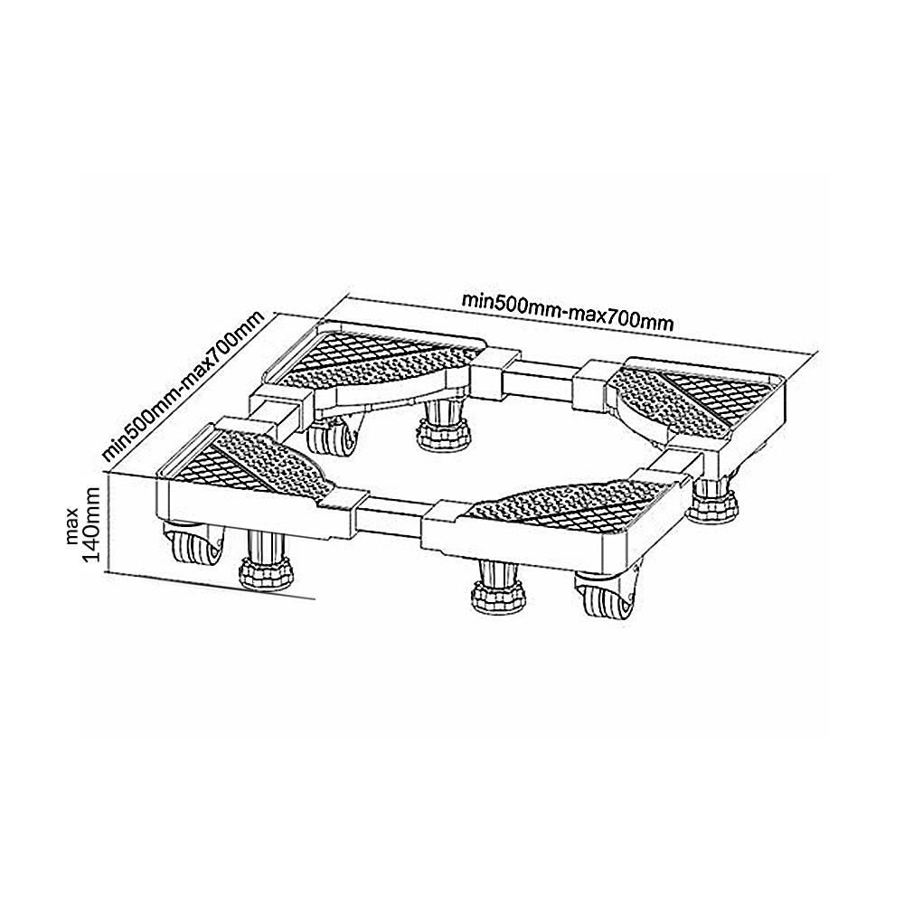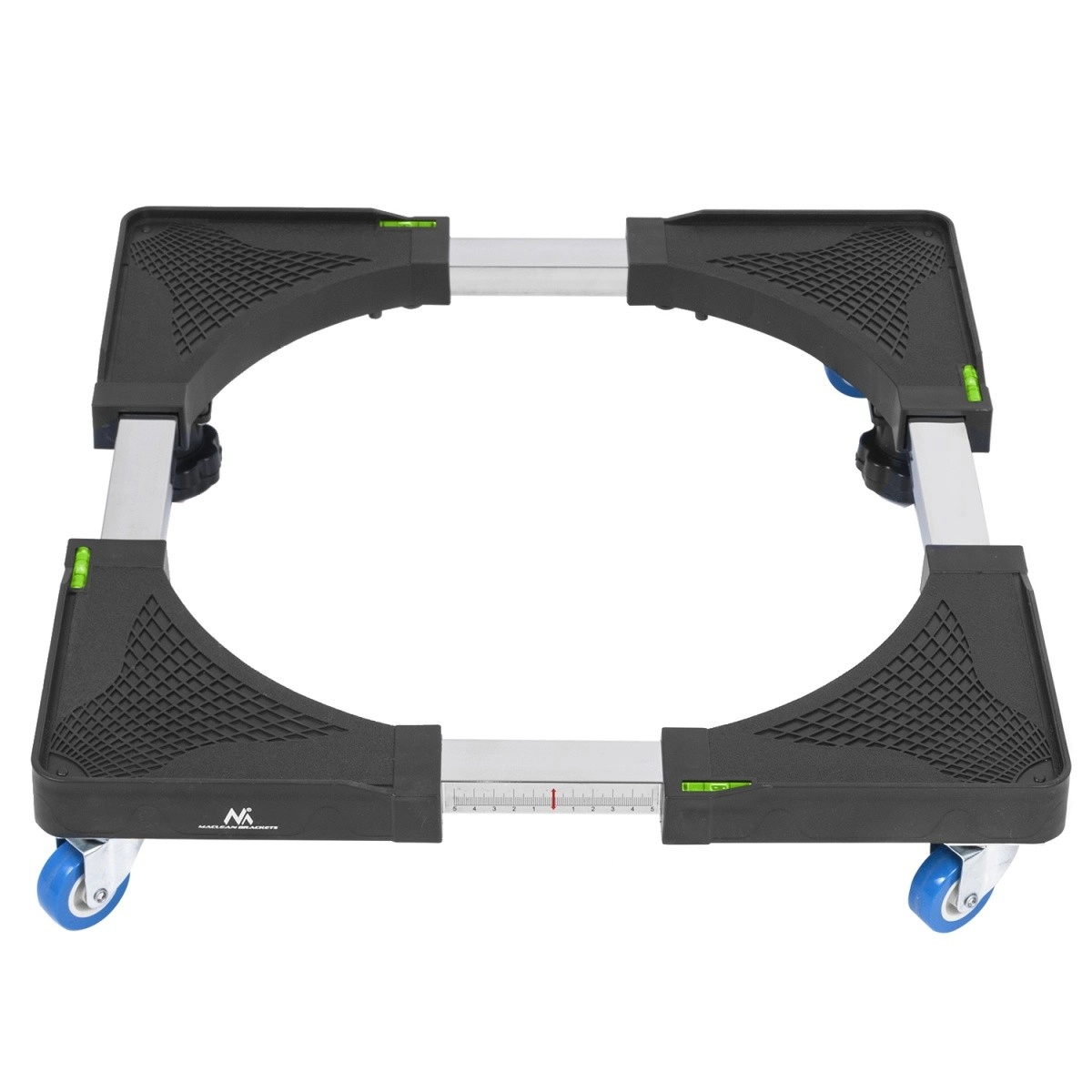 Univerzalna pomična podloga Maclean Brackets dizajnirana je za jednostavno postavljanje i premještanje velikih električnih uređaja. Zahvaljujući mogućnosti podešavanja širine i duljine u rasponu od 50 do 70 cm, podloga se lako prilagođava različitim veličinama uređaja. Kotači na osnovi omogućuju brzo i jednostavno premještanje bez oštećenja poda.