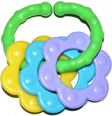 Šarena grizalica za najmlađe nudimo u četiri različita oblika. Prikladno od dobi 0 mjeseci.