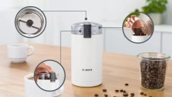 Uživajte u mirisu i okusu svježe mljevene kave svaki dan. Bosch TSM6A011W je pouzdan i jednostavan za upotrebu, a zahvaljujući posudi za mljevenje od nehrđajućeg čelika i oštrom dvokrakom nožu brzo i ravnomjerno melje zrna kave. Njegovo kompaktno cilindrično kućište stane u svaku kuhinju i lako se sprema.