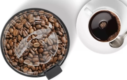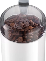 Sigurnost je na prvom mjestu: mlinac se pokreće samo s ispravno postavljenim i zatvorenim poklopcem te je opremljen sigurnosnim gumbom protiv neželjenog uključivanja. Prozirni poklopac omogućuje kontrolu grubosti mljevenja u svakom trenutku tijekom rada. Idealan ne samo za kavu, već i za sitno mljevenje začina ili orašastih plodova.