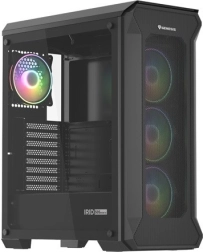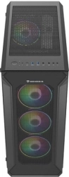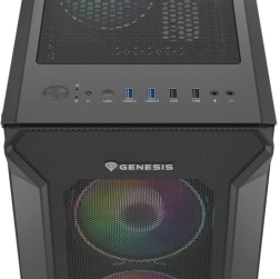 GENESIS Irid 505 V2 ARGB kombinira vrhunsko hlađenje, elegantan dizajn i promišljenu funkcionalnost. Perforirana prednja ploča i četiri predinstalirana 120 mm ARGB ventilatora osiguravaju izvrstan protok zraka, dok bočnica od kaljenog stakla ističe komponente i svjetlosne efekte. Na gornjoj ploči nalaze se 4× USB (2× USB 3.0), audio priključci i gumb za promjenu ARGB režima.