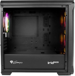GENESIS Irid 503 ARGB V2 je promišljeno micro tower kućište za ploče Micro‑ATX i Mini‑ITX. Perforirani prednji panel i četiri predinstalirana 120 mm ARGB ventilatora osiguravaju izvrsnu cirkulaciju zraka, dok kaljeno staklo sa strane ističe komponente i osvjetljenje. Integrirani ARGB kontroler (5 V 3‑pin) omogućuje podešavanje efekata samostalno ili preko kompatibilne matične ploče; zahvaljujući 4‑pin PWM konektoru moguće je upravljati i brzinom vrtnje prema opterećenju.