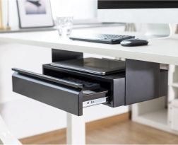 Organizator ladica ispod stola Maclean nudi idealno rješenje za bolje organiziranje i povećanje prostora na radnom mjestu. Ima dovoljno mjesta za dokumente ili druge predmete. Dodatni prostor iznad ladice dimenzija cca 450 x 310 mm pruža dovoljno mjesta primjerice za laptop. Ladica se kreće na izdržljivim vodilicama, što osigurava visoku stabilnost i sigurnost. Maksimalno opterećenje je 5 kg.