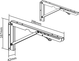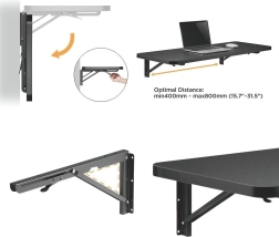 Univerzalni sklopivi zidni nosači na koje se može montirati polica. Set nosača podnosi opterećenje do 50 kg. Promišljen i praktičan mehanizam omogućuje preklapanje konzola i spuštanje police u okomiti položaj, čime se po potrebi štedi prostor.