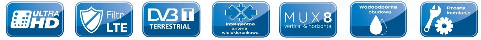Integrirani LTE/4G filter učinkovito potiskuje smetnje iz mobilnih mreža, dok širokopojasno pojačalo (aktivna verzija) osigurava čist i snažan signal. Unaprijed montirani dijelovi i robusna aluminijska konstrukcija olakšavaju instalaciju i jamče dugotrajnu otpornost na vremenske utjecaje.
