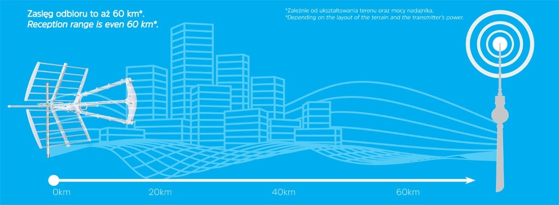 Usmjerena konstrukcija s visokim dobitkom i širokopojasnim pojačalom (aktivna verzija) osigurava stabilan prijam DVB-T/T2 i tamo gdje je signal slabiji.
