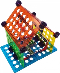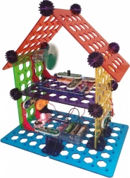Set BOFFIN II Moja kuća idealan je za djecu od 8 godina naviše koja žele shvatiti principe električne energije i pametnog doma. Osnovu čini perforirana ploča na koju se dijelovi jednostavno spajaju – bez lemljenja, sigurno i s trenutačnim rezultatom. Sastavit ćete rasvjetu, alarm, dvoetažnu kuću, vjetrenjaču pa i party kuću te provjeriti funkcionalnost prema priloženim shemama.