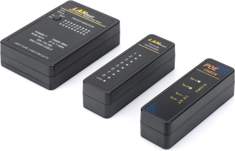 Ugrađena funkcija PoE Check odmah pokazuje je li na portu dostupno napajanje prema IEEE 802.3af/at i koji je njegov režim. Tester je pogodan za upletene parice (UTP/FTP/STP), telefonske linije RJ11/RJ12 i koaksijalnu kabelsku instalaciju BNC – idealan pomagač pri instalaciji DSL priključaka i održavanju LAN-a.