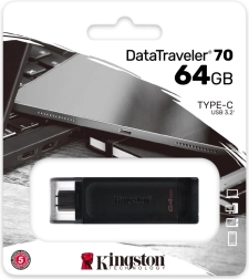 Kingston DataTraveler 70 je praktičan flash pogon s priključkom USB‑C, idealan za prijenosna računala, tablete i pametne telefone. Zahvaljujući standardu USB 3.2 Gen 1 omogućuje brz prijenos dokumenata, fotografija i videozapisa, a kapacitet 64 GB pokriva svakodnevne potrebe.