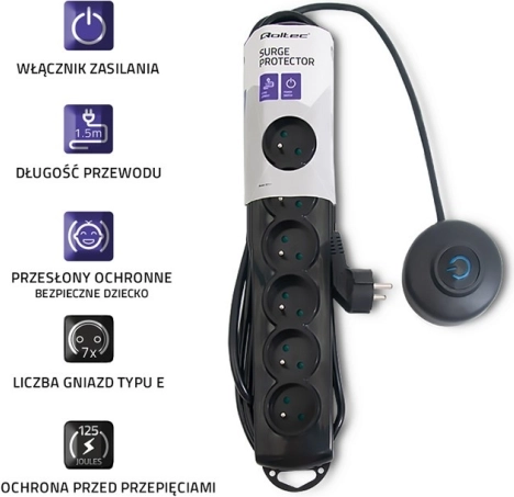 - Udobnost i učinkovitost: 7 utičnica, 1,5 m dovod, nožni prekidač s pozadinskim osvjetljenjem.