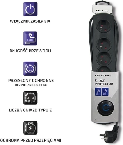 prenaponska produžna letva 5x s prekidačem, 1,8 m, crna