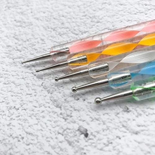 Naš set od 5 dvostranih sondi namijenjen je profesionalnoj i kućnoj upotrebi pri ukrašavanju noktiju. Svaka sonda opremljena je metalnim kugličnim vrhovima koji su idealni za aplikaciju ukrasa ili rad s mokrim lakom i obojenim gelovima.