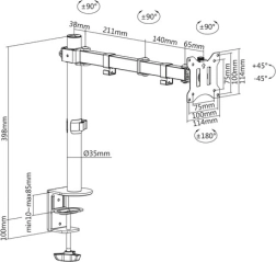 Držač monitora pruža izvrsnu mogućnost individualnog podešavanja zaslona za optimalnu ergonomiju. Pogodan je za monitore veličine 15"-32" s maksimalnim nosivim opterećenjem od 8 kg.