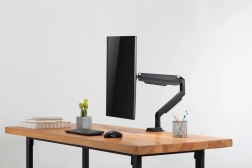 Jednokraki nosač za monitor idealan je za svakoga tko želi poboljšati ergonomiju svog radnog stola. Kompatibilan je s monitorima od 15" do 32" i maksimalnom nosivošću od 9 kg. Pomoću integrirane plinske opruge monitor se može lako podesiti na željenu visinu.