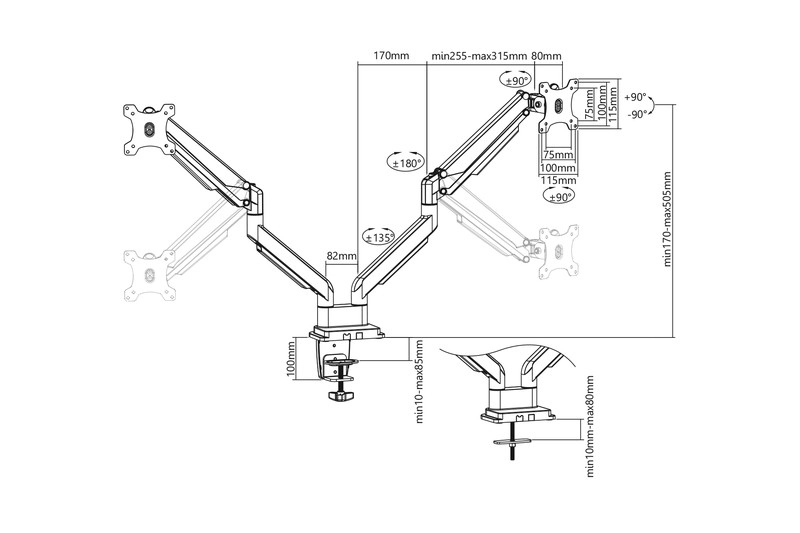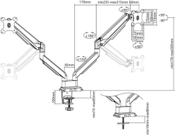 S maksimalnim opterećenjem do 9 kg po monitoru i mogućnošću pričvršćivanja putem VESA (75/100), ova dvostruka stolna ruka pruža fleksibilnu podesivost koja prilagođava položaj monitora točno vašim potrebama.