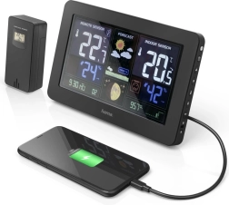 Ova digitalna meteorološka stanica idealna je za svakoga tko želi imati točne informacije o vremenu izravno kod kuće. Opremljena je kolor zaslonom na kojem možete pratiti i unutarnju i vanjsku temperaturu i vlažnost, faze Mjeseca i atmosferski tlak.