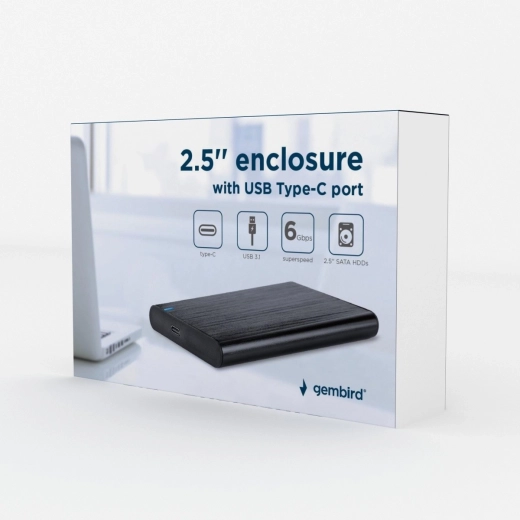 Kompaktno vanjsko kućište za 2,5" diskove s USB 3.1 sučeljem i USB‑C priključkom nudi brz prijenos podataka, jednostavnu ugradnju bez alata i izdržljivo aluminijsko kućište s statusnom LED lampicom. Idealno za HDD/SSD do 9,5 mm i kapaciteta do 4 TB.