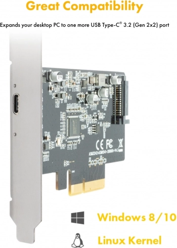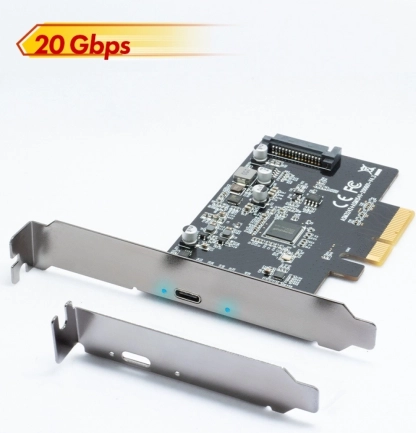 Proširite svoje računalo modernim sučeljem USB‑C 3.2 Gen 2x2 s brzinom prijenosa do 20 Gb/s. Ova PCIe kartica kompatibilna je s utorima PCIe x4/x8/x16, koristi kvalitetne Asmedia čipsete i nudi pouzdan rad te signalne LED‑ice za jednostavnu kontrolu statusa.