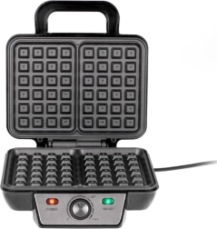 Korištenje aparata za vafle zaista je intuitivno! Zahvaljujući neljepljivom premazu grijaćih ploča, gotove vafle lako se vade, a uređaj se potom jednostavno čisti. Termostat održava optimalnu temperaturu za pečenje vafli, a svjetlosni indikatori informiraju nas kada je aparat spreman za uporabu i pečenje. Zahvaljujući funkciji kontinuirane regulacije temperature, možemo podesiti vrijeme pečenja od 5 do 15 minuta, ovisno o upotrijebljenim sastojcima i našim ukusima. Aparat omogućuje pečenje dvije velike vafle odjednom, pa smo sigurni da će svaka porcija biti topla i hrskava! Uređaj zauzima vrlo malo mjesta, možete ga ponijeti i na putovanje, a mogućnost vertikalnog odlaganja štedi prostor u kuhinjskim ormarićima.