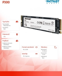 Patriot P300 je performansni interni SSD disk s kapacitetom od 1 TB, koji koristi brzo sučelje PCIe Gen 3 x4 i protokol NVMe 1.3. Zahvaljujući tome postiže brzinu sekvencijalnog čitanja do 2100 MB/s i zapisa do 1650 MB/s, što značajno ubrzava učitavanje aplikacija i prijenos podataka.