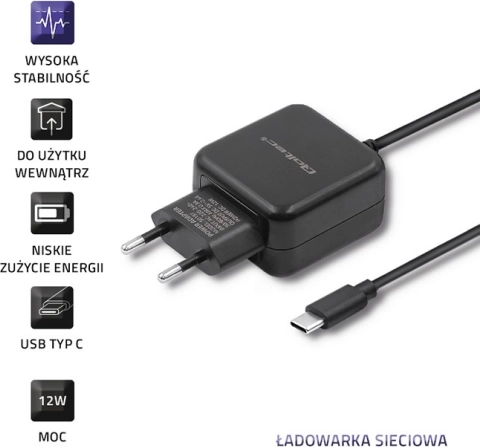 Pouzdan mrežni punjač QOLTEC snage 12 W (5 V / 2,4 A) za brzo i sigurno punjenje telefona i tableta. U pakiranju se nalazi USB-C kabel. Punjač nudi zaštitu od prenapona, preopterećenja, kratkog spoja i pregrijavanja, visoku učinkovitost i nisku potrošnju energije – idealno za dom i ured.
