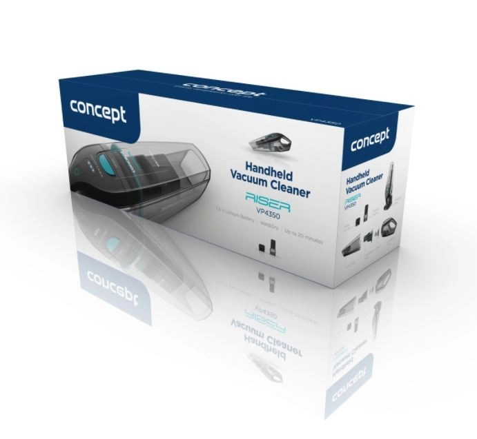 Ručni usisavač Concept RISER VP4350 idealan je pomoćnik za brzo čišćenje u kućanstvu i automobilu. Zahvaljujući tehnologiji Wet & Dry lako se nosi s prašinom, mrvicama i prolivenim tekućinama. Ergonomična ručka, niska masa i uravnoteženo težište omogućuju udobno upravljanje jednom rukom.