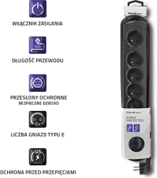 Ova prenaponska letva idealno je rješenje za organizaciju kabela na radnom stolu, uz televizor ili u kuhinji. Zahvaljujući 6 utičnicama možete istodobno priključiti više uređaja, a 5 m dugi kabel daje vam slobodu postavljanja. Osvijetljena nožna sklopka Quick Switch omogućuje praktično uključivanje i isključivanje bez saginjanja.