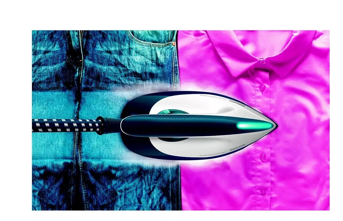 Bezproblematčno glačanje - S parnim učinkom omogućuje generator Philips PerfectCare Compact učinkovito i brzo glačanje bez postavljanja temperature. Zahvaljujući tehnologiji OptimalTEMP više nećete morati razvrstavati rublje niti čekati na zagrijavanje ili hlađenje glačala.