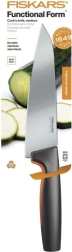 Nož šefa kuhinje Fiskars Functional Form kombinira visoku funkcionalnost i sigurnost za moderne kuhare. Prikladan je za rezanje mesa, sjeckanje povrća i začina. Zahvaljujući ergonomskoj dršci s SoftGrip površinom nudi siguran i udoban hvat. Nož je dizajniran s ciljem jednostavne upotrebe, čišćenja i skladištenja. Možete ga prati u perilici posuđa.