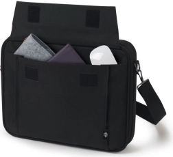 Vaše je prijenosno računalo sigurno u podstavljenom pretincu s stabilizacijskom elastičnom trakom, dok metalni okvir povećava krutost i zaštitu. Prednji džep prima telefon, kabele, olovke i punjač, tako da vam je sve pri ruci. Zahvaljujući maloj težini, odvojivom i podesivom remenu te remenu za ručku kofera, torba se lako prenosi.