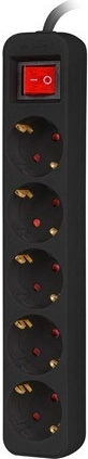Ovaj elegantni crni produžni razdjelnik nudi pet okruglih Schuko utičnica sa zaštitnim preklopima i praktičnim klackalnim prekidačem za brzo isključivanje svih povezanih uređaja. Zahvaljujući kabelu duljine 3 m, lako dosežete i do teže dostupnih zidnih utičnica.