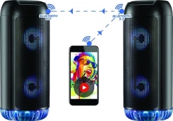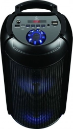Unutra se nalaze 2 × 4" (102 mm) jedinice s bass-refleksom za izraženije basove i čiste visoke tonove u rasponu 40 Hz – 20 kHz. Ugrađena Li-Ion baterija 1200 mAh pruža 4–8 sati glazbe, a punjenje se obavlja praktično preko micro USB-a. Upravljanje omogućuju multimedijske tipke, okretni regulator i pregledan LED zaslon. RGB osvjetljenje zvučnika i postolja može se isključiti dugim pritiskom tipke M.